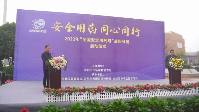 启动仪式上,湖南汉森制药股份有限公司质量总裁刘爱华、湖南津湘药业有限公司质量总裁彭蓉、益阳市第一中医医院副院长胡耀祖分别代表药品生产企业、药品经营企业、医疗机构作表态发言,介绍了筑牢公众安全用药防线、促进产业高质量发展的切实举措和工作成效,表示将积极响应“全国安全用药月”的活动号召,做良心药、放心药,知法守法、诚信经营,提高医疗服务质量,为人民群众的身体健康和生命安全作出应有的贡献。