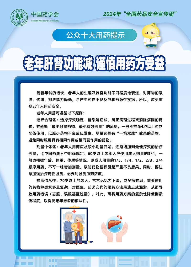 2024年“全国药品安全宣传周”公众十大用药提示丨5.老年肝肾功能减,谨慎用药方受益